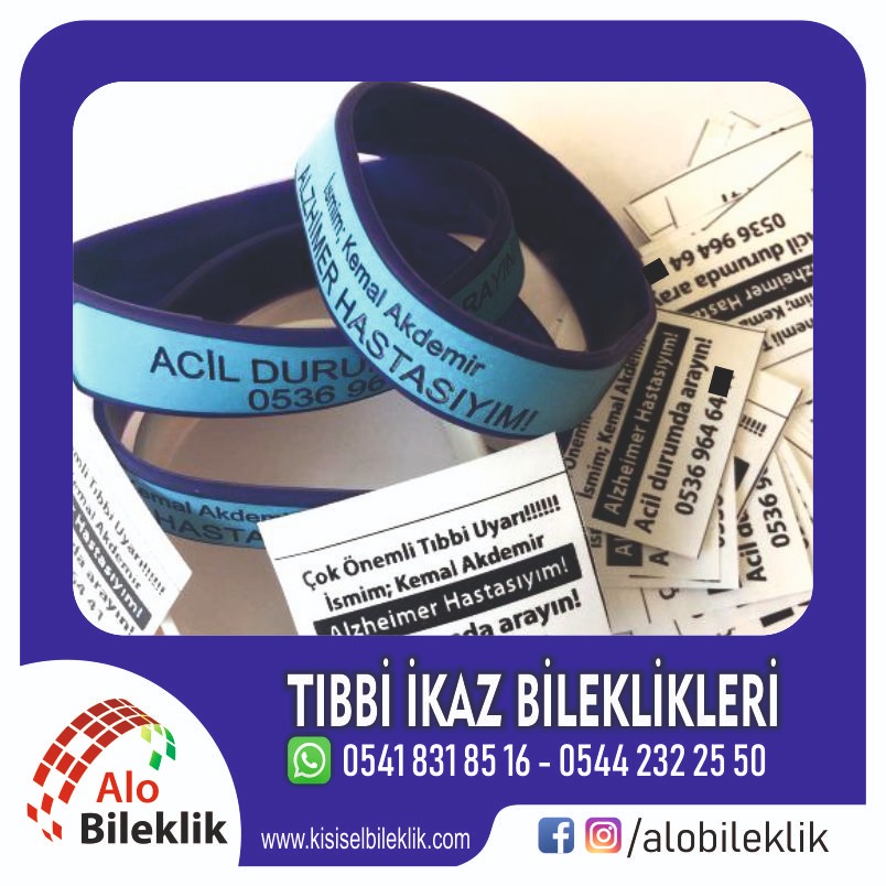 Alzheimer Hastasıyım! Acil durum telefonu baskılı bilgi bileklikleri üretimi yapmaktayız!